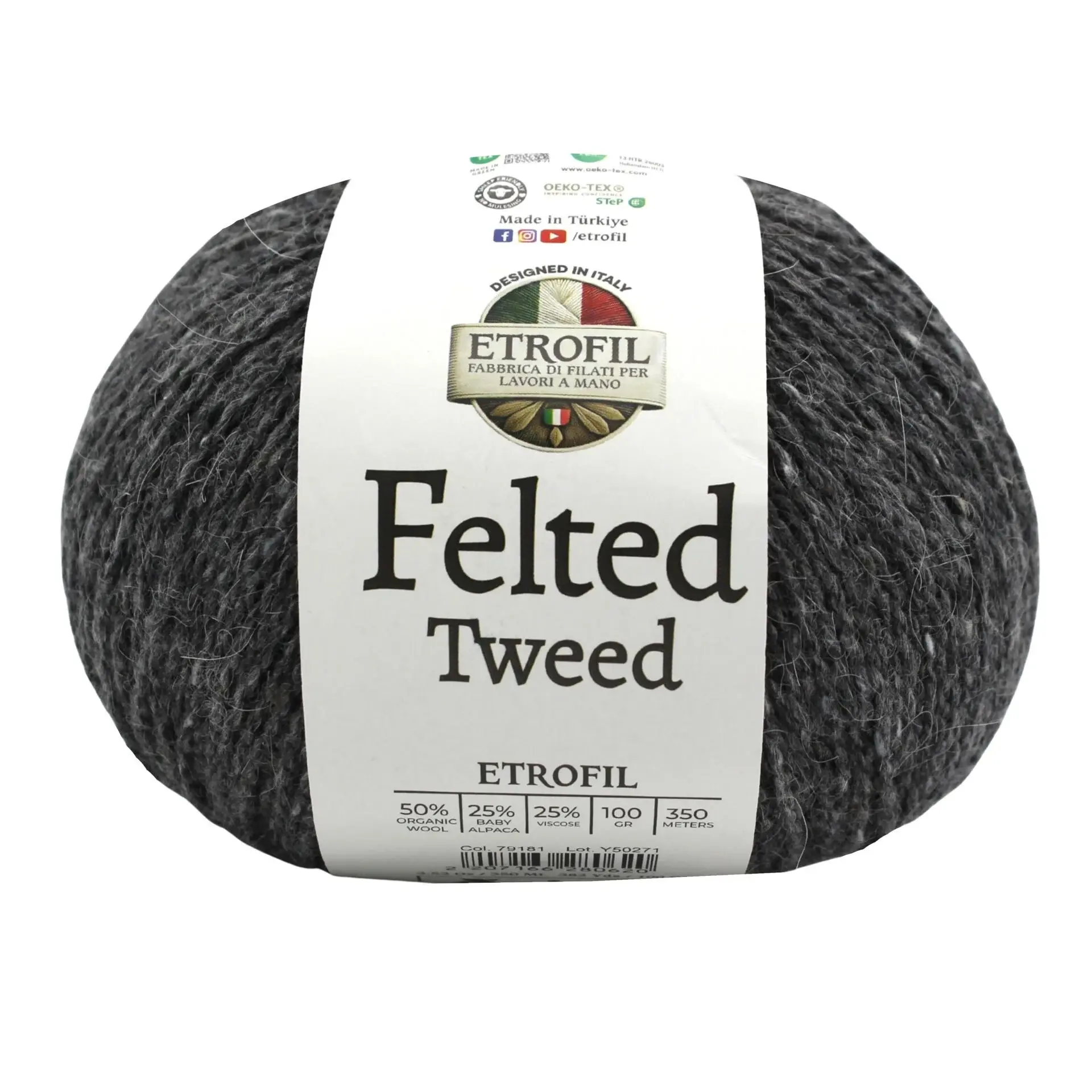 PRESTIJ Koleksiyonu’nun öne çıkan ipliklerinden FELTED TWEED, doğal liflerin eşsiz uyumunu modern bir estetikle buluşturuyor. Organik merino yününün yumuşaklığı, baby alpakanın ipeksi hafifliği ve viskozun zarif akışkanlığıyla projelerinize hem doğallık hem de zarafet katıyor.