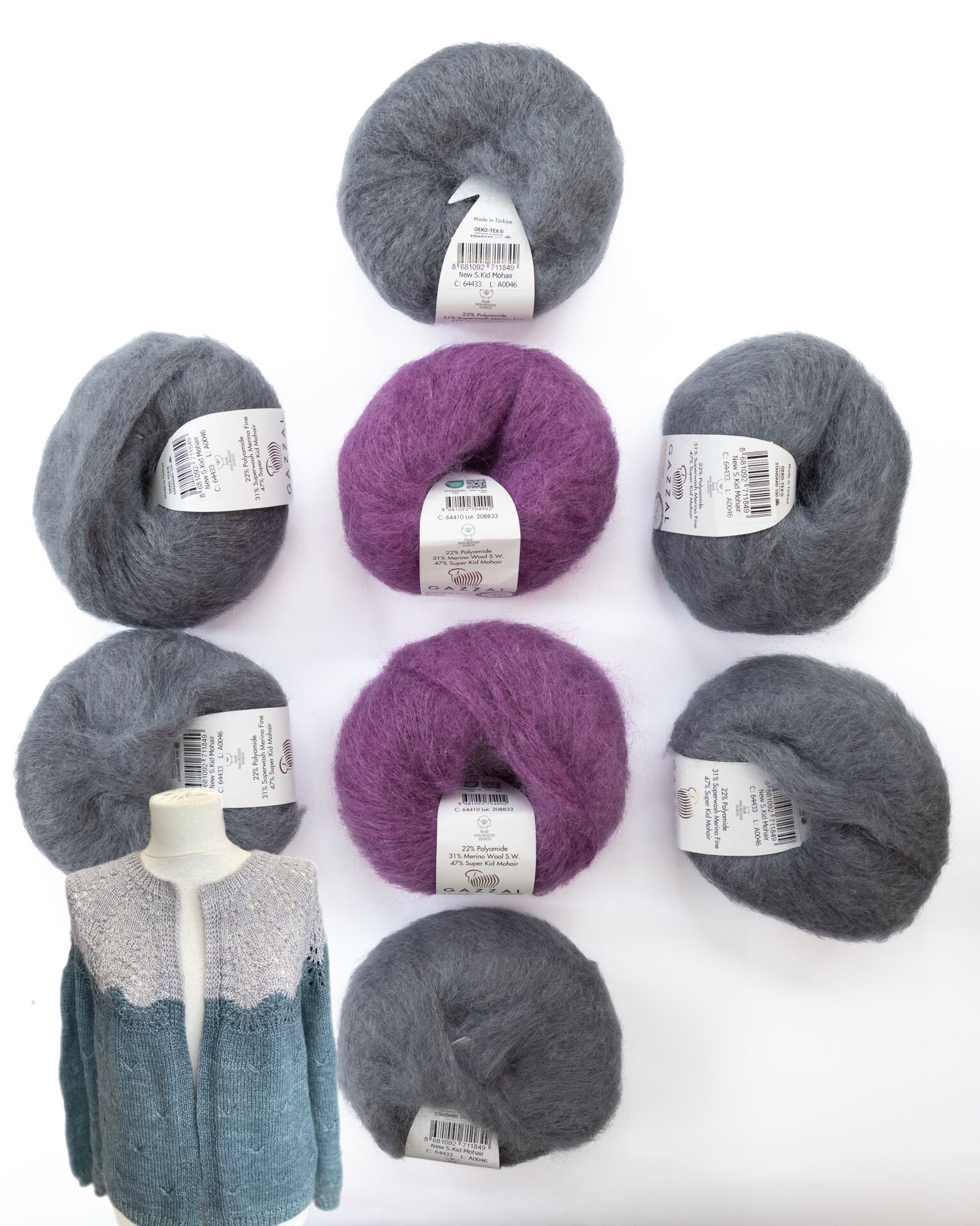 Gazzal Mohair Ajurlu Hırka Kiti Gri Mor