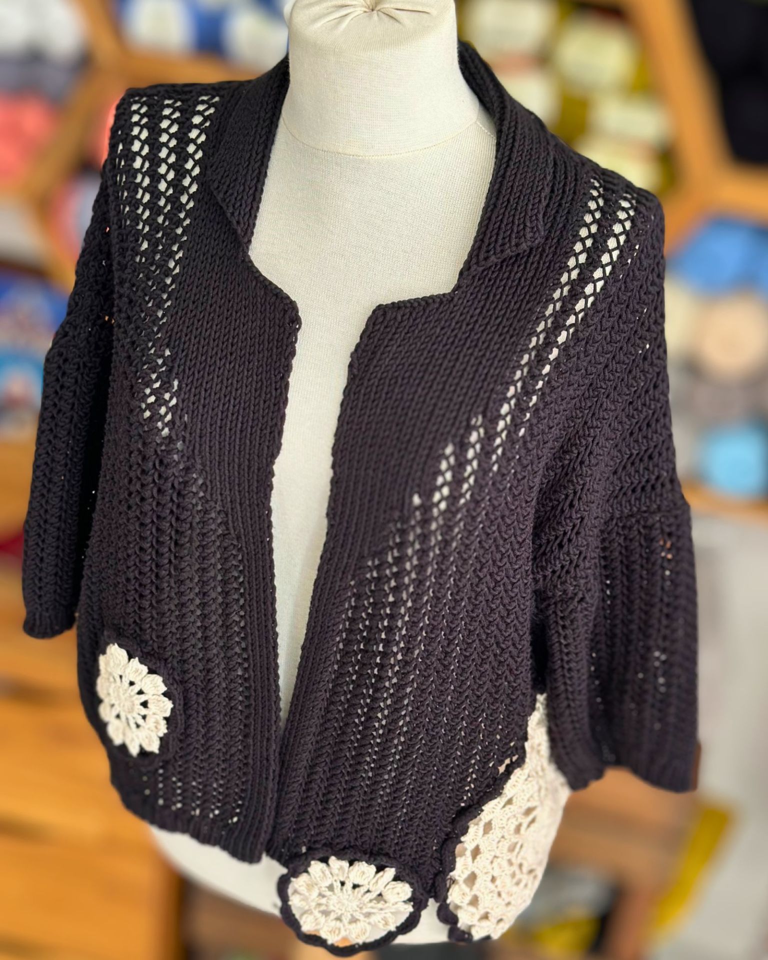 Motifli & Ajurlu Hırka Kiti + Anlatım (36-38 Beden) / Bej